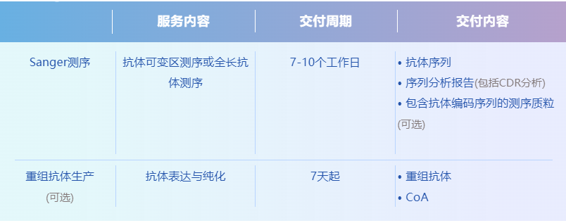* 样品要求:不低于1×10⁶个杂交瘤细胞,客户需提供单克隆抗体所属亚型。