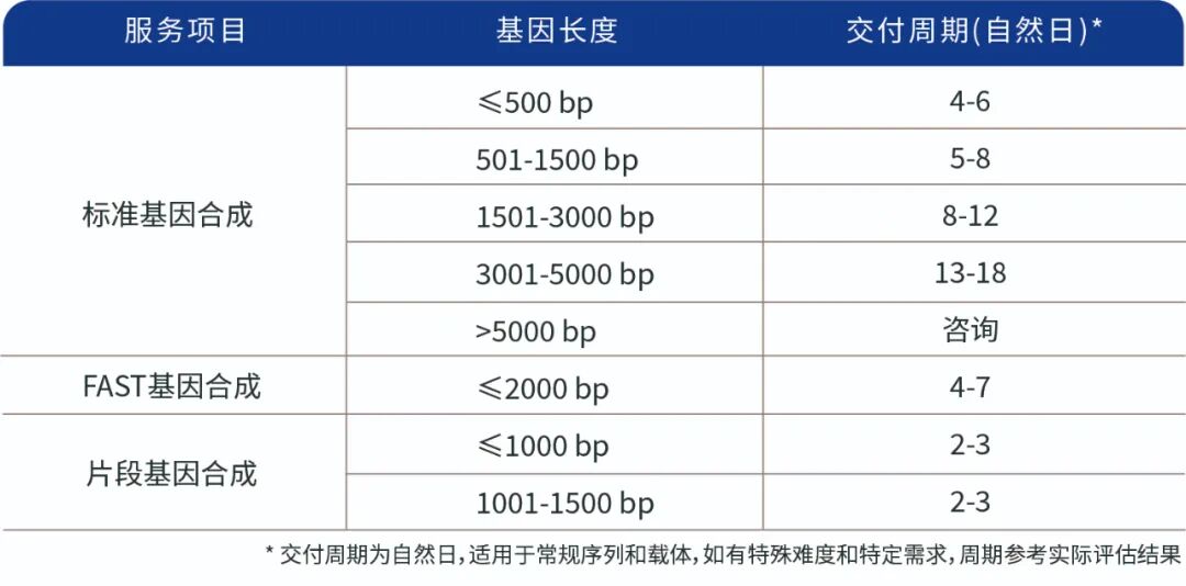 片段基因合成特别说明:若选择片段基因合成服务,将交付400 ng 的PCR 产物,并随附该片段的测序结果