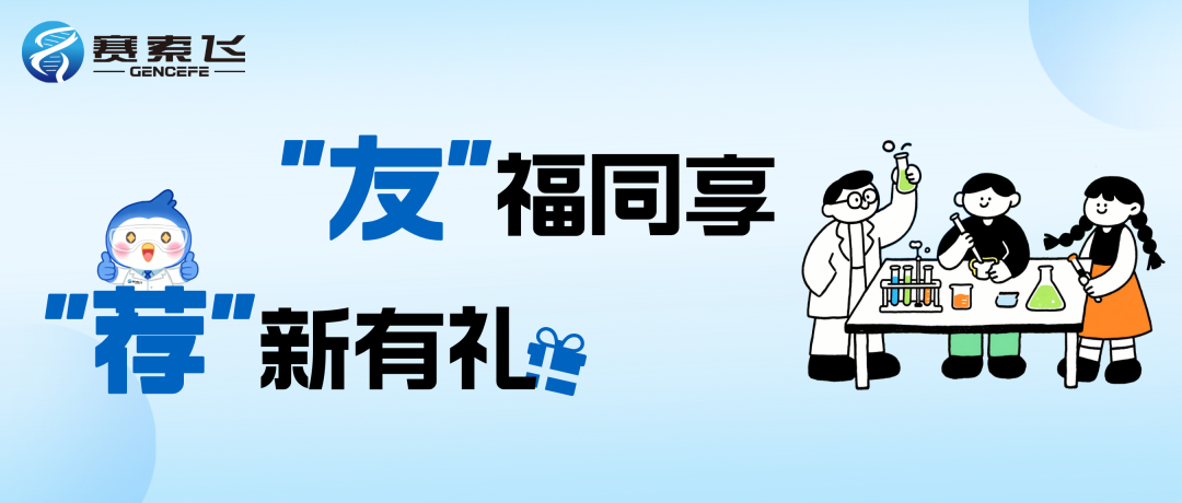 1.关注“赛索飞生物”微信公众号,后台回复“推荐有礼+姓名+联系方式”,我们将第一时间联系您并发放礼品。